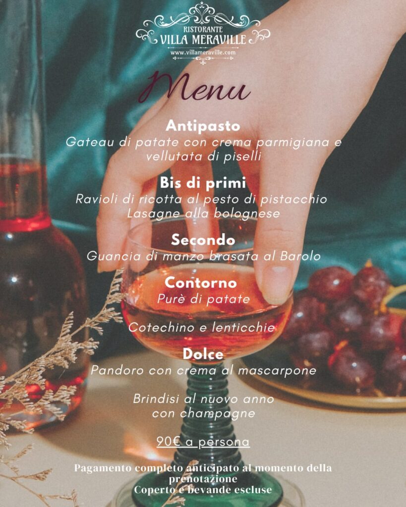 Un Capodanno dedicato a chi desidera celebrare con stile, in un ambiente raffinato e suggestivo, tra luci soffuse, dettagli vintage e la magia di un luogo iconico come Villa Meraville.